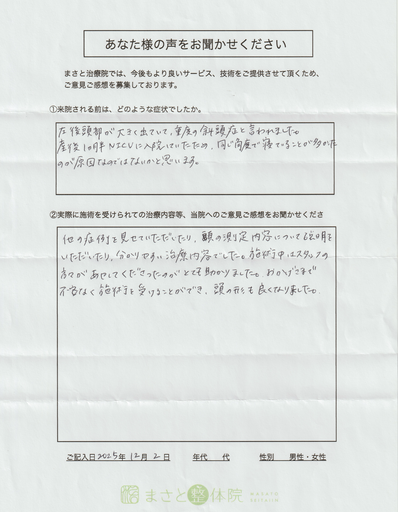 おかげさまで不安なく施術を受けることができ、頭の形も良くなりました。